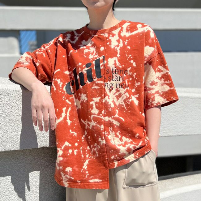 【paw's lazo】ブリーチ切替プリントTシャツ